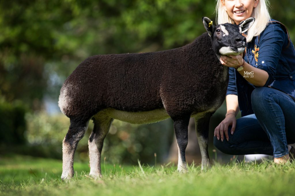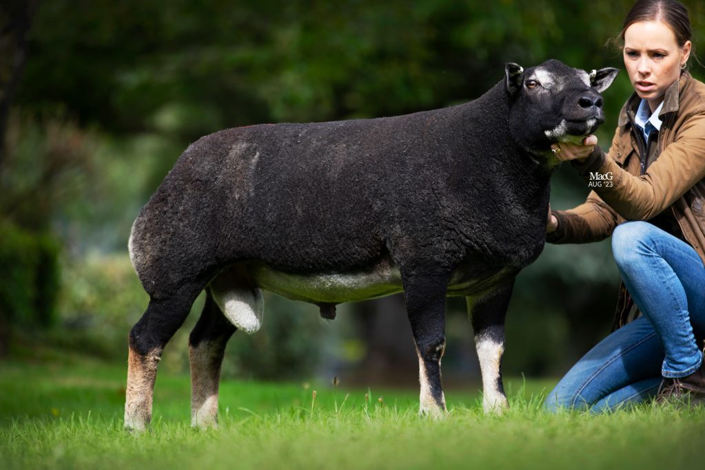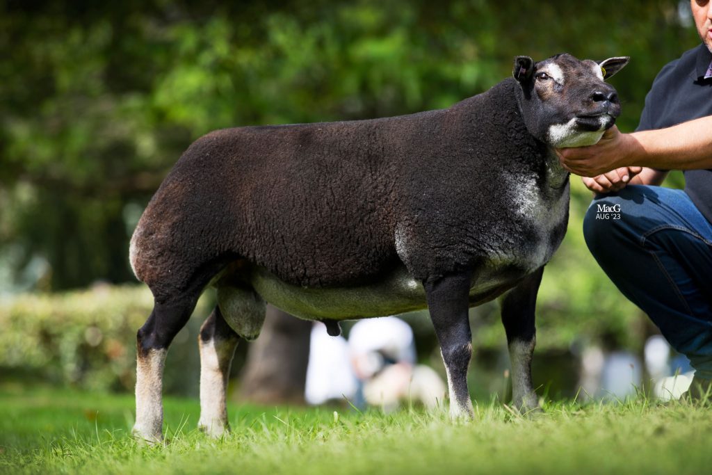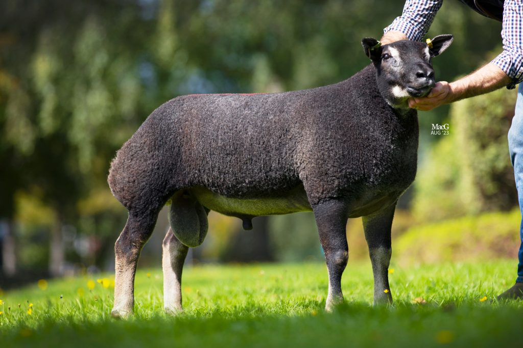 Their Brougher Cruiser, a two-shear from their flock based in County Tyrone, Northern Ireland, was Male Champion and Reserve Supreme at the pre-sale show the evening before. He is by the noted ram, Drumard Ed, while is dam is an imported Sunnybank ewe by a Braam Raats sire. Forking out the cash was Clive Richardson who takes him back to County Fermanagh to work in his Cleenagh flock.