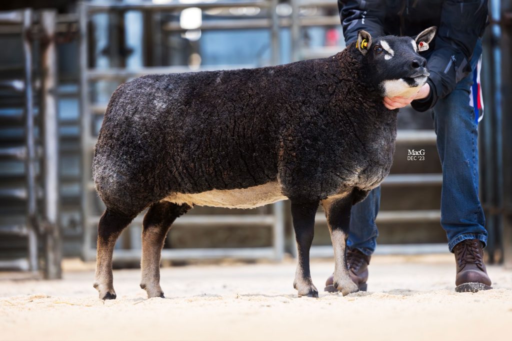 Frist to sell at that price was the very first lot in the ring, a three-year-old Turbo Das ewe from Andrea Dolce Little, Fencehouses, Durham. Bred by Jan Rodenburg and by Turbo Das Notorious B.I.G, she sold to John Wright on the Isle of Mull scanned with twins to Tamtain Dance Monkey.